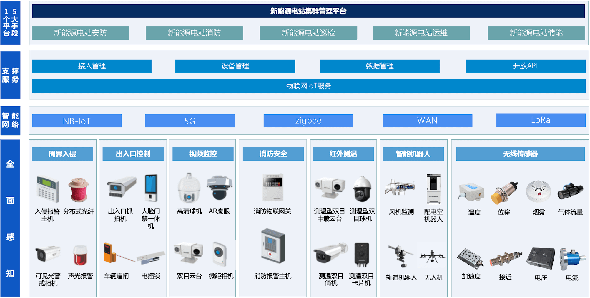 智慧能源解决方案是一项基于多传感器信息融合技术和专家系统的全面数字化管理方案,专为新能源电站而设计。面对新能源电站快速发展的需求,该方案通过将新能源场站多源信息进行智能融合,利用专家系统进行自动分析和综合,构建了全方位的电站管理体系,涵盖安防、消防、巡检、运维、储能等多个方面。通过1个平台+5大手段的建设,旨在打造新能源电站集群全智能化体系,为国家新能源产业生态建设提供支持,并成为全国新能源电站管理的典范。该方案通过构建多个模块,包括安防、消防、巡检、运维、储能等,实现了电站集中、数字、智能化的管理。在安防方面,系统可以实时监控电站的安全状态,对于潜在风险进行实时预警,提高电站安全性。消防模块通过智能监测和报警系统,有效防范火灾风险,减少火灾损失。巡检模块则通过全自动巡查监测功能,降低了巡检的人力成本,提高了效率。运维方面,系统不仅可实现24小时实时监控,还能提供设备状态和巡检影像的实时回传,方便值班人员远程管理。储能模块通过智能化管理,延长了电站使用周期,提高了投资收益。